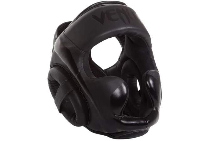 Chránič hlavy Elite od značky VENUM je vyroben ze 100% semi-kůže, pro vysokou odolnost je vyplněna trojitou pěnou, která dokonale pohlcuje nárazy. Přilba je navržena v souladu s bezpečnostními standardy a zajišťuje tak bezpečnost a komfort během zápasu, tréninku či nácviku se sparring partnerem. Tvar helmy je navržen tak, aby byly chráněny lícní kosti, oči, nos a uši. Pro zajištění nejvyšší kvality ochrany je chránič hlavy Elite vyroben ze semi-kůže, která poskytuje pohodlí při očekávaných intenzivních úderech v oblasti hlavy. Pokrytí hlavy a obličeje bylo navrženo tak, aby bylo možné kombinovat úplnou ochranu hlavy a zároveň udržet 180 stupňový výhled na svého soupeře.