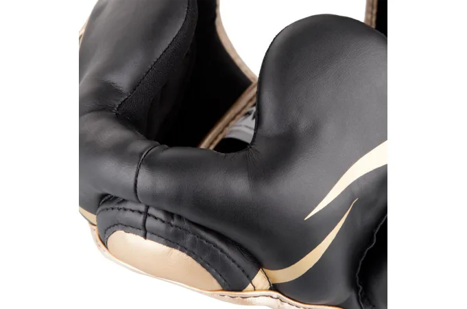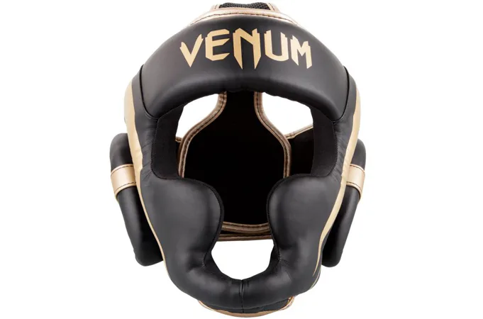 Chránič hlavy Elite od značky VENUM je vyroben ze 100% semi-kůže, pro vysokou odolnost je vyplněna trojitou pěnou, která dokonale pohlcuje nárazy. Přilba je navržena v souladu s bezpečnostními standardy a zajišťuje tak bezpečnost a komfort během zápasu, tréninku či nácviku se sparring partnerem. Tvar helmy je navržen tak, aby byly chráněny lícní kosti, oči, nos a uši. Pro zajištění nejvyšší kvality ochrany je chránič hlavy Elite vyroben ze semi-kůže, která poskytuje pohodlí při očekávaných intenzivních úderech v oblasti hlavy. Pokrytí hlavy a obličeje bylo navrženo tak, aby bylo možné kombinovat úplnou ochranu hlavy a zároveň udržet 180 stupňový výhled na svého soupeře.