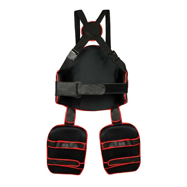 Součástí BSP jsou také 2 chrániče stehen, které se fixují pomocí 2 popruhů se suchým zipem. Aby chrániče neklouzaly, připnou se pomocí manžet se suchým zipem k chrániči hrudníku. Toto řešení umožňuje chrániče odložit, pokud je zrovna nepotřebujeme.