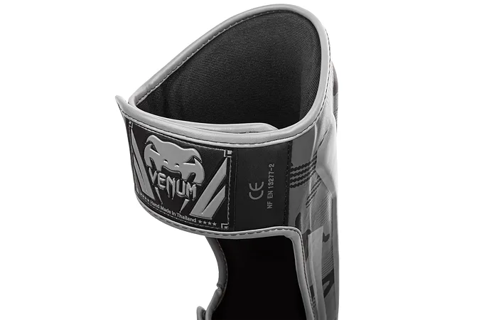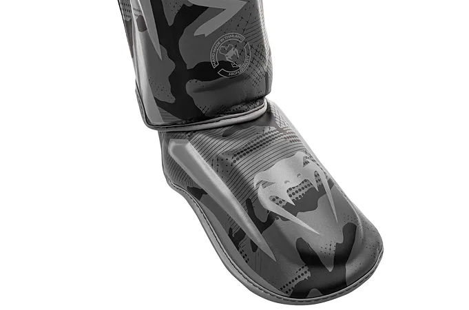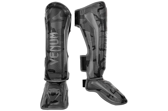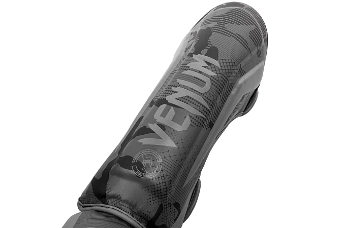 Chrániče holení a nártu Elite značky VENUM z nové řady Elite Camo jsou rozšířenou formou ochrany při bojových sportech jako thaibox, kickbox, sambo a jiné. Zdokonalené tvarování, odlehčený materiál a vynikající uchycení na noze jsou zárukou intenzivního ale bezpečného tréninku kopů. Chrániče poskytují anatomické vyztužení na klíčových plochách - chodidlech a holenní kosti (maxïmální ochrana). Jsou vyráběny ručně v Thajsku a skládají se z mnoha vrstev přírodních pěn. Vysoká úroveň ochrany je díky použité „sendvičové“ technologii. Vynásobením vrstev se nám podařilo velmi účinně zastavit rázovou vlnu.