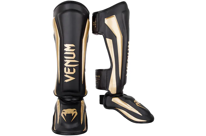 Chrániče holení a nártu Elite značky VENUM jsou rozšířenou formou ochrany při bojových sportech jako thaibox, kickbox, sambo a jiné. Zdokonalené tvarování, odlehčený materiál a vynikající uchycení na noze jsou zárukou intenzivního ale bezpečného tréninku kopů. Chrániče poskytují anatomické vyztužení na klíčových plochách - chodidlech a holenní kosti (maxïmální ochrana).