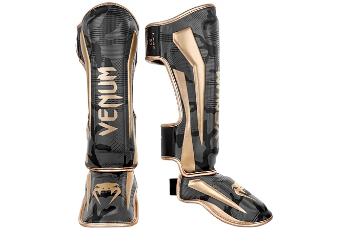 Chrániče holení a nártu Elite dark camo/gold VENUM: Varianta: L: VEN-71081