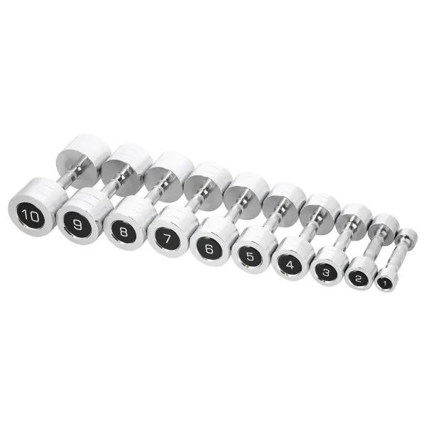 Jako materiál je použita vysoce kvalitní chromovaná ocel, která zaručuje dlouhou životnost, odolnost vůči poškození a zamezuje oxidaci. Činky jsou opatřeny mřížkovanou rukojetí pro pevný a jistý úchop.