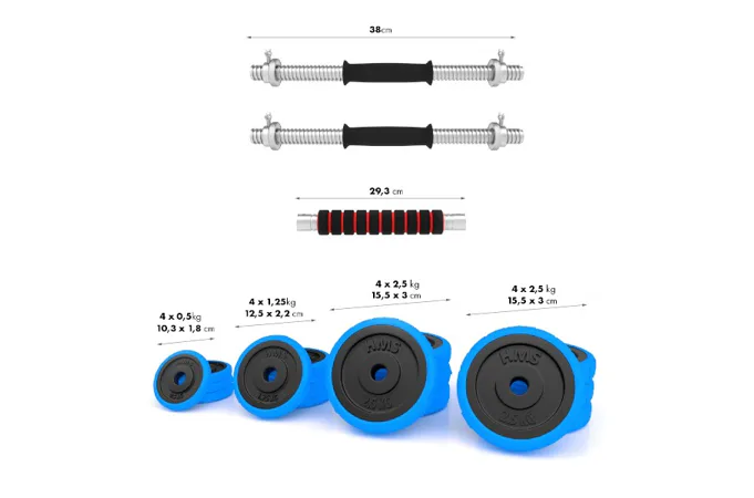 Činky jsou vyrobeny z vysoce kvalitní, lité oceli, která je zárukou dlouhé životnosti. Kotouče jsou opatřeny gumovým návlekem, který chrání jak činky, pak podlahu před poškozením při neopatrném odložení. Proti posunutí závaží se činky zajišťují šroubovacími zámky, které jsou dodatečně jištěny šroubem.