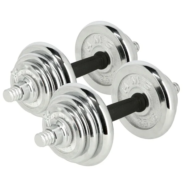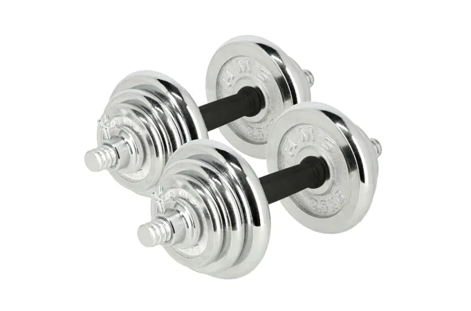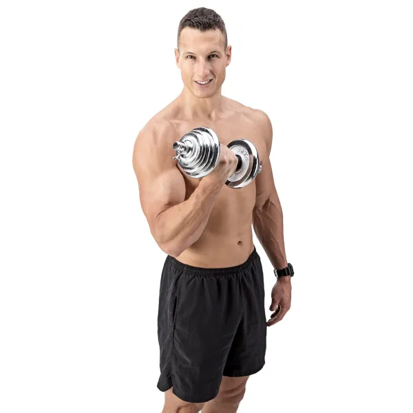 Činky jsou vyrobeny z vysoce kvalitní, chromované oceli, která je zárukou dlouhé životnosti. Kotouče se proti posunutí zajišťují šroubovacími zámky, které jsou dodatečně jištěny šroubem s křídlovou matkou.
