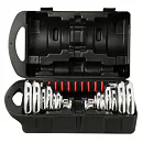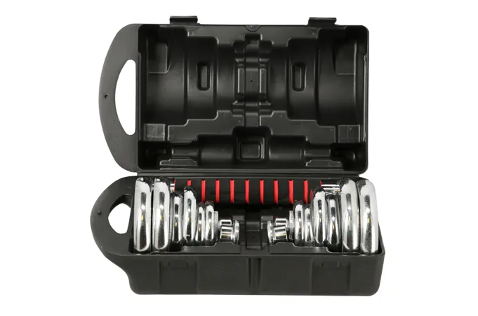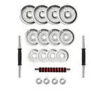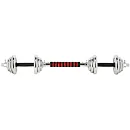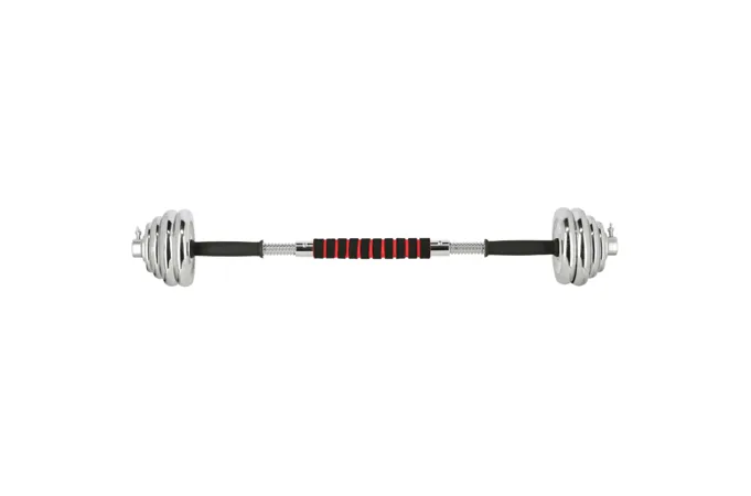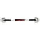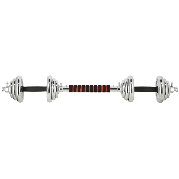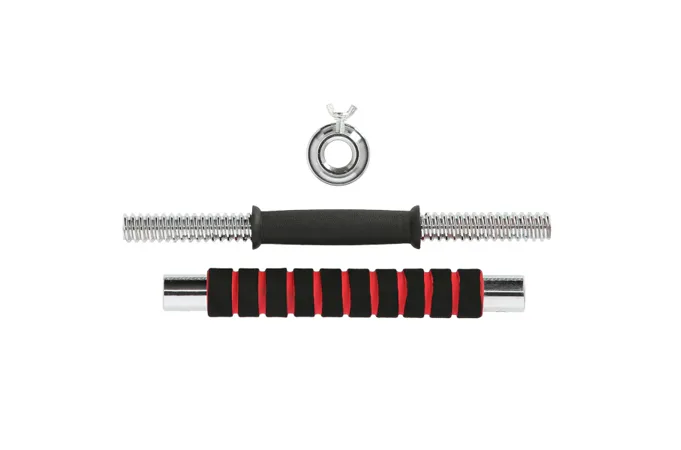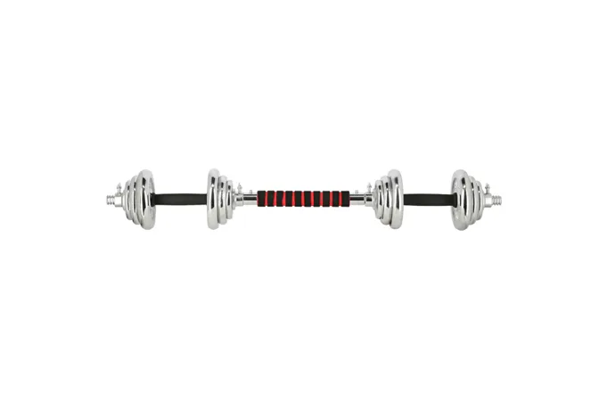 Speciální spojovací díl je po stranách opatřen závity, do nichž se jednoduše všroubují obě činky, toto řešení šetří náklady a místo ve Vaší domácí posilovně. Sada obsahuje 2 krátké, nakládací osy opatřené ergonomickým úchopem, spojovací díl, 4 zámky a 12 kotoučů.