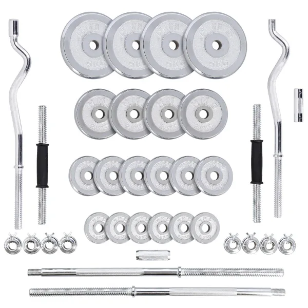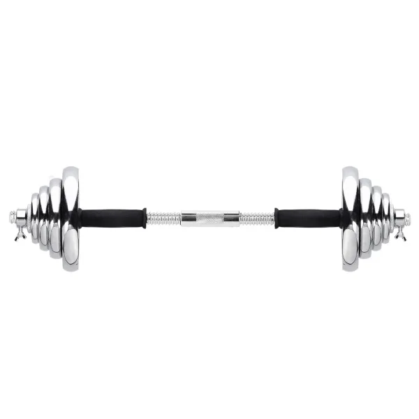 Činky jsou vyrobeny z vysoce kvalitní, chromované oceli, která je zárukou dlouhé životnosti. Kotouče se proti posunutí zajišťují šroubovacími zámky, které jsou dodatečně jištěny šroubem s křídlovou matkou.