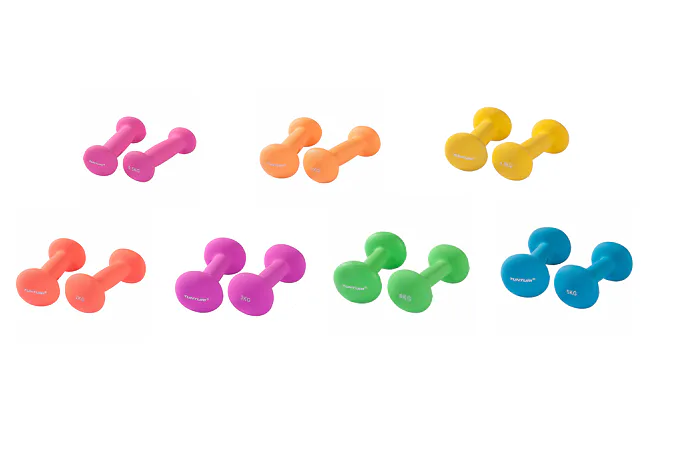 Sada 2 neoprenových činek s výraznou, rozeznatelnou barvou. Skvělé pro zábavné i funkční cvičení. Ideální pro domácí použití k posílení různých svalových skupin. Vhodné i pro aerobik, gymnastiku nebo skupinové fitness cvičení. Hrubá horní vrstva je vyrobena z měkké gumy a poskytuje pevné a pohodlné uchopení.