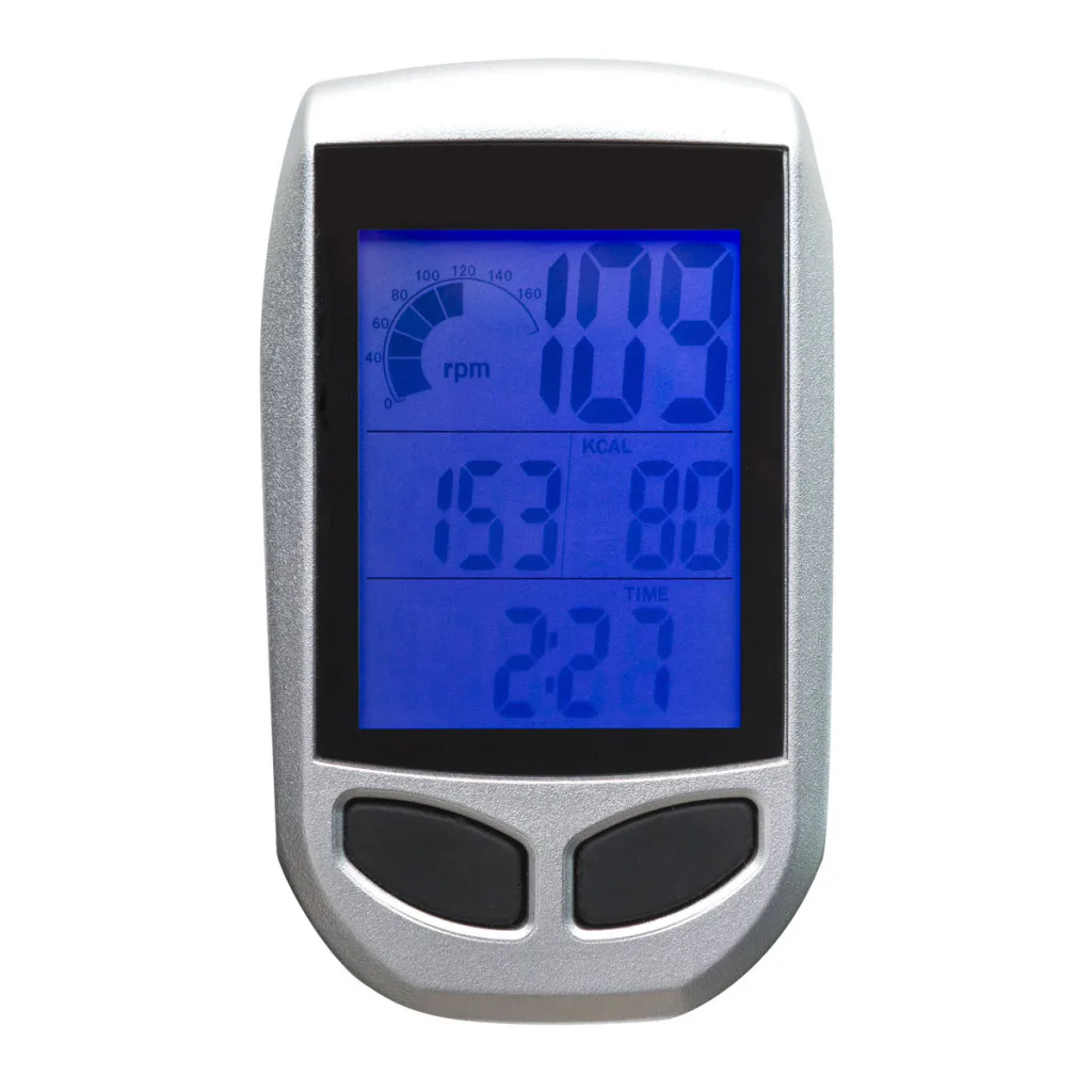Přehledný podsvícený LCD displej zobrazuje čas tréninku, aktuální rychlost, ujetou vzdálenost, tepovou frekvenci, otáčky za minutu a spálené kalorie.
