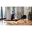 Veslařský trenažér CONCEPT2 RowErg PM5 nižší využívá pro regulaci zátěže odpor vzduchu, která se ovládá posuvnou pákou, umístěnou z boku stroje. Odpor stroje je přímo úměrný síle, kterou se na stroj působí - čím více síly vynakládáte, tím vydatnější je trénink. Své výsledky můžete sledovat na přehledném displeji PM5, který je na baterky (součástí monitoru).