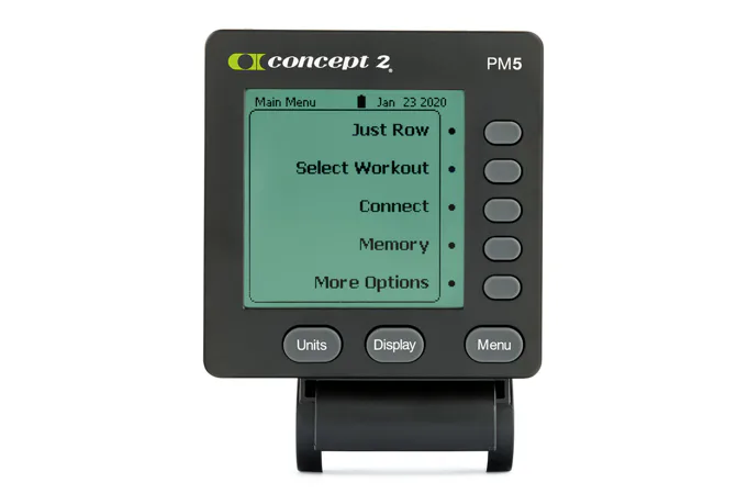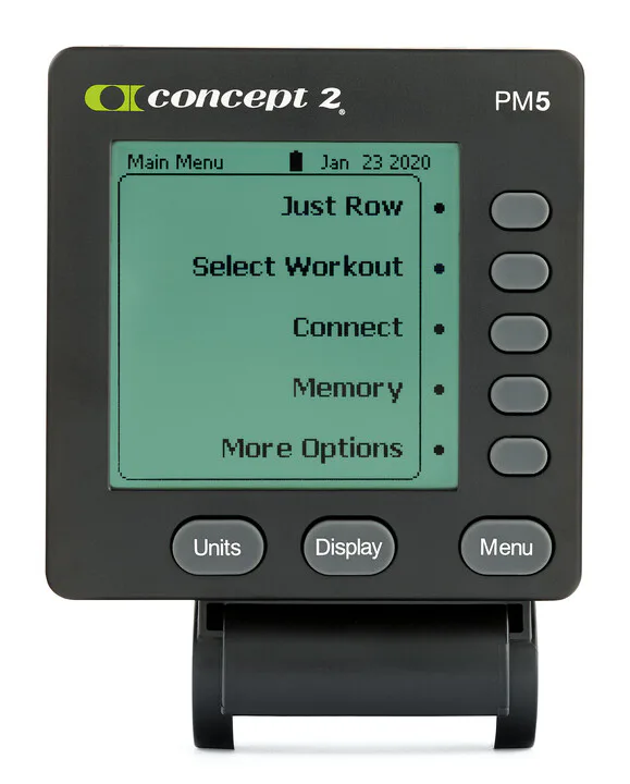 Masivnější veslařský trenažér CONCEPT2 RowErg PM5 vyšší využívá pro regulaci zátěže odpor vzduchu, která se ovládá posuvnou pákou, umístěnou z boku stroje. Odpor stroje je přímo úměrný síle, kterou se na stroj působí - čím více síly vynakládáte, tím vydatnější je trénink. Své výsledky můžete sledovat na přehledném displeji PM5, který je na baterky (součástí monitoru).