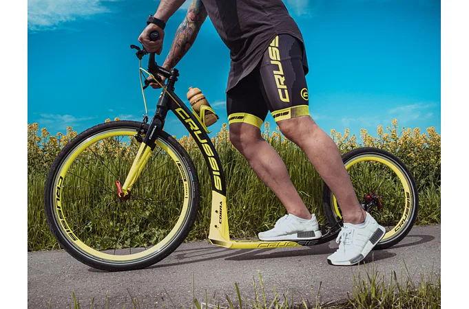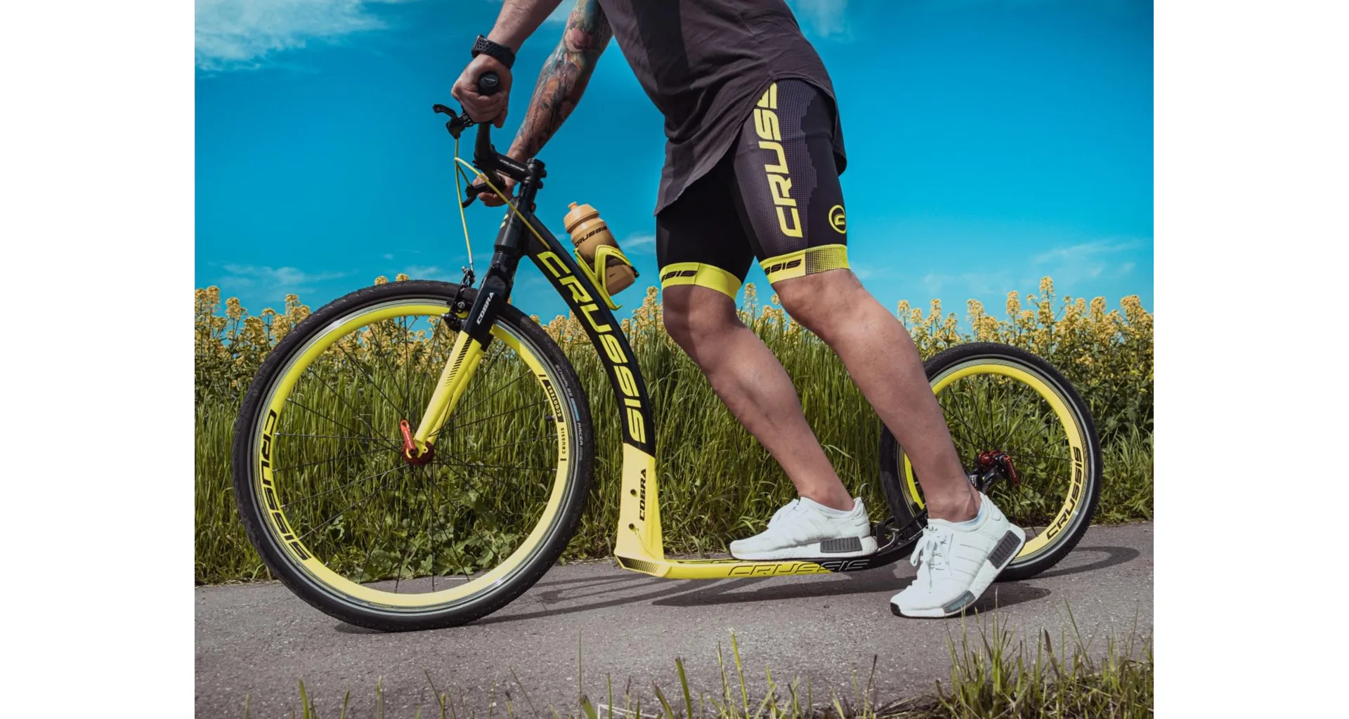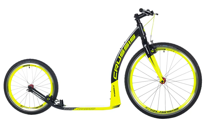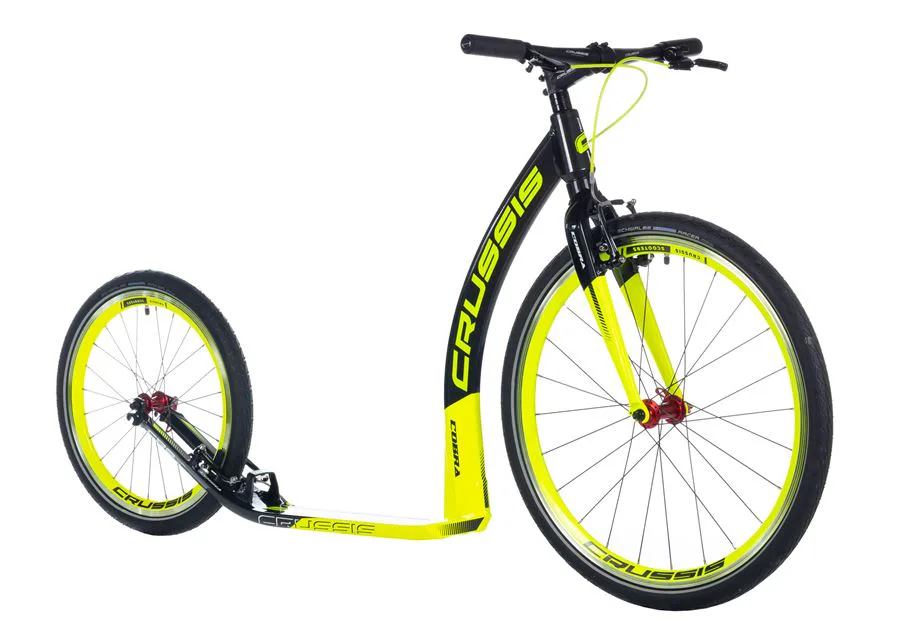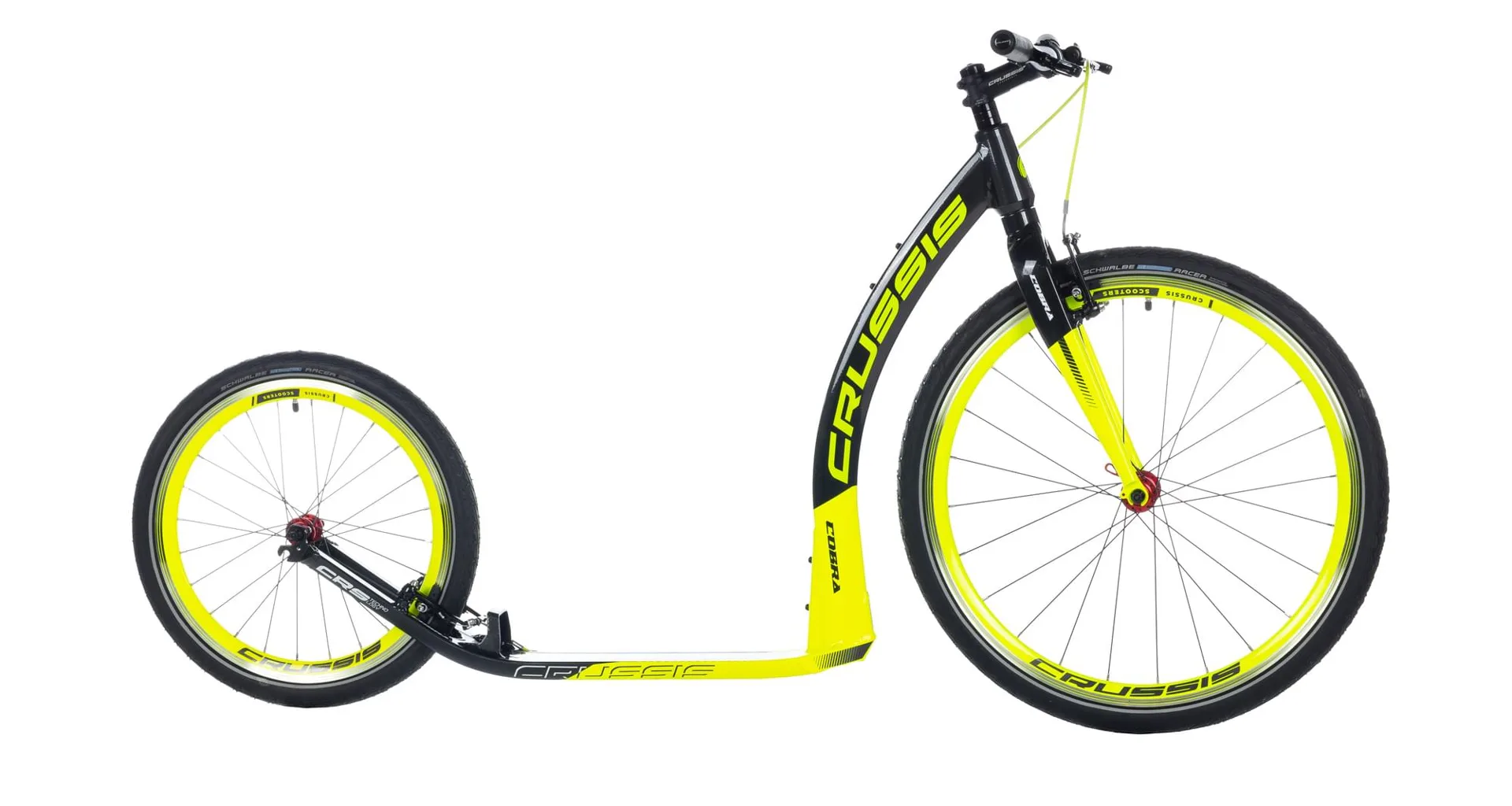 Unikátní hliníkový rám koloběžek Crussis Cobra byl vyvinut tak, aby se zadní vidlicí tvořil jeden celek. To eliminuje únavové lomy v místech, kde je vidlice ke stupátku obvykle přivařena. Kónický tvar hlavové trubky spolu s trojúhelníkovým profilem krku zvyšuje pevnost rámu.