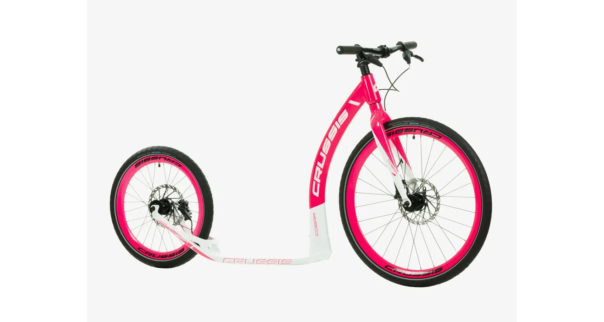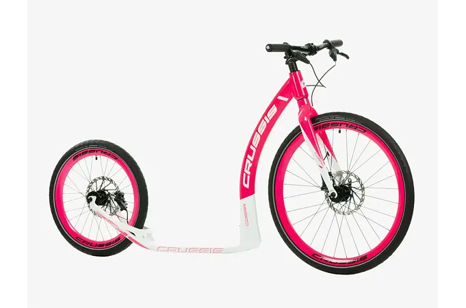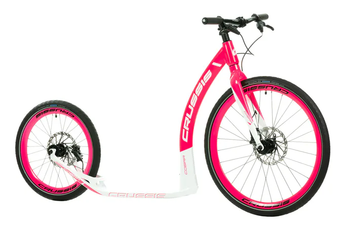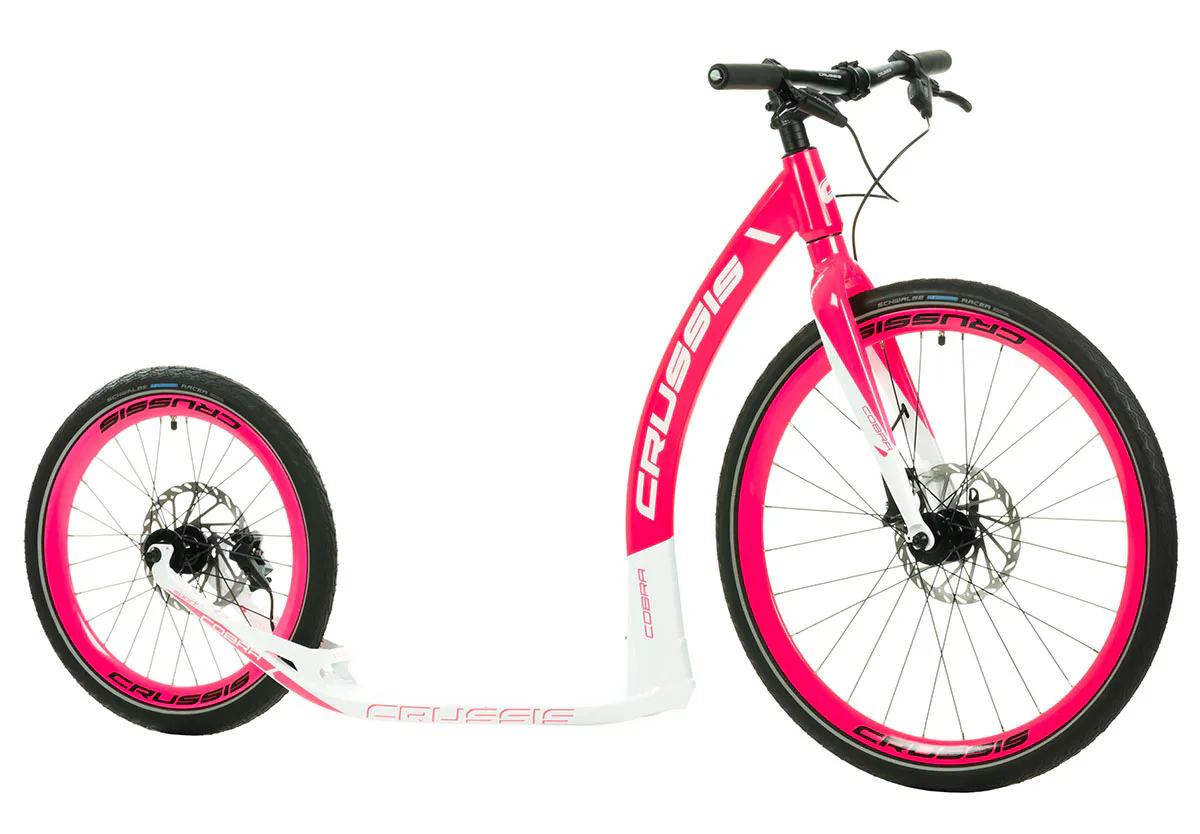 Unikátní hliníkový rám koloběžek Crussis Cobra Sport 4.2-5 byl vyvinut tak, aby se zadní vidlicí tvořil jeden celek. To eliminuje únavové lomy v místech, kde je vidlice ke stupátku obvykle přivařena. Kónický tvar hlavové trubky spolu s trojúhelníkovým profilem krku zvyšuje pevnost rámu.
