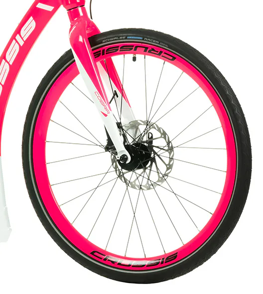Komfort zajišťuje nejen vyladěná geometrie, ale také stabilní kola obuta do osvědčených plášťů Schwalbe Marathon Racer, které mají extrémně nízký valivý odpor a výborný záběr.