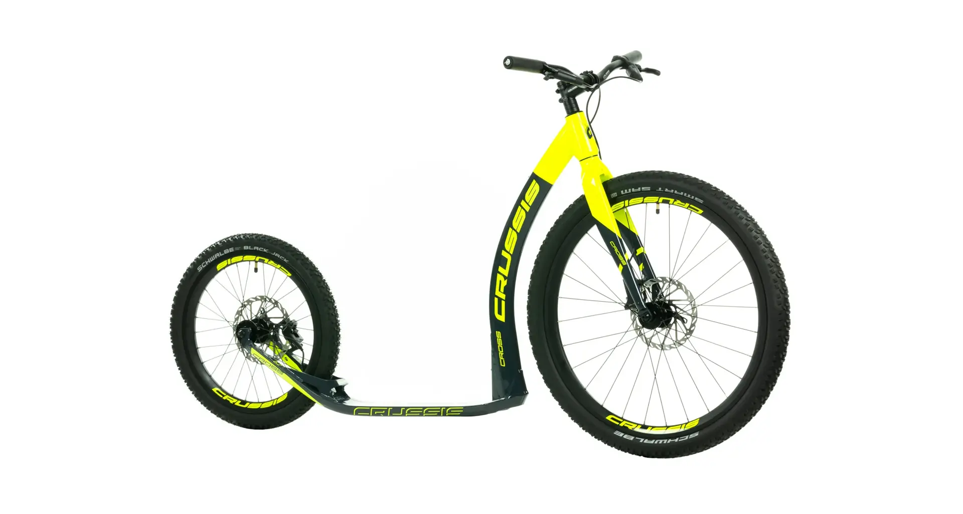 Unikátní hliníkový rám koloběžek Crussis Cross Hard byl vyvinut tak, aby se zadní vidlicí tvořil jeden celek. To eliminuje únavové lomy v místech, kde je vidlice ke stupátku obvykle přivařena. Kónický tvar hlavové trubky spolu s trojúhelníkovým profilem krku zvyšuje pevnost rámu.