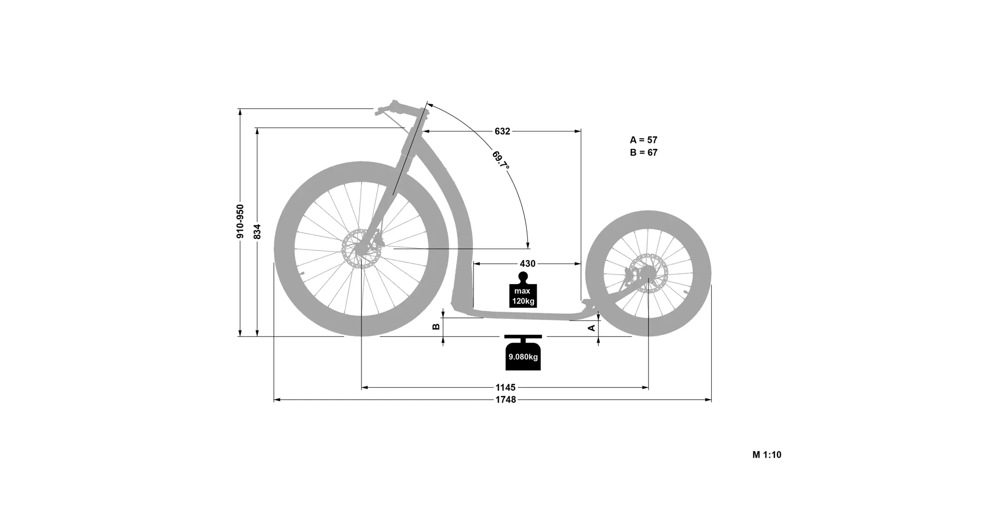 Nosnost koloběžky je 120 Kg.