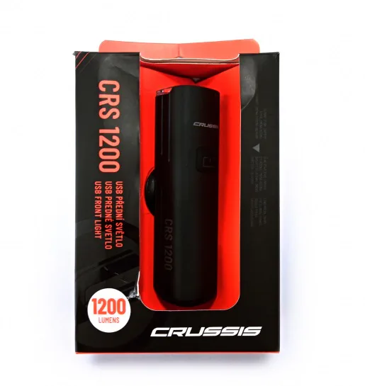 Přední světlo Crussis CRS 1200 je vhodné jak na kolo tak na koloběžku. Díky univerzálním silikonovým páskům ho snadno připevníte na jakýkoliv typ řidítek. má 5 režimů svícení: nízký, střední, vysoký a 2 intenzity blikání. Světlo se snadno a rychle nabíjí pomocí USB-C (může sloužit jako power banka). Světlo je lehké a skladné.