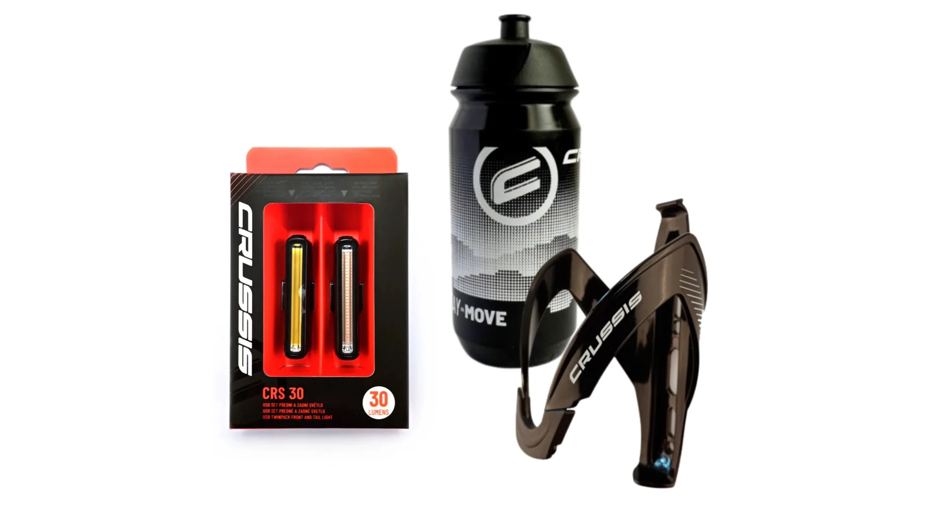 Doplňte své kolo praktickou sadou originálního příslušenství od Crussis, která obsahuje vše potřebné pro bezpečnou a pohodlnou jízdu: