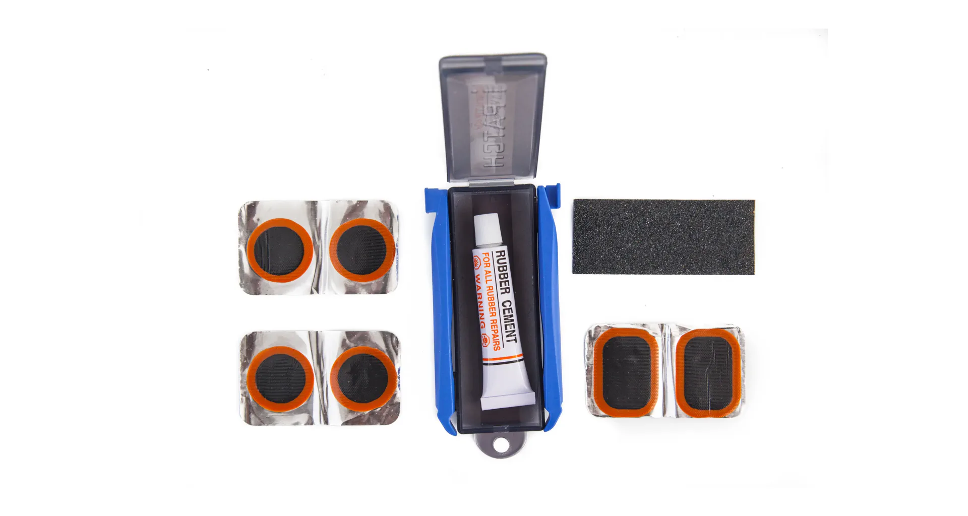 Kompaktní balíček obsahující 4 malé a 2 velké záplaty, lepidlo, brusný papír a 2 montpáky. Nezbytný pomocník pro rychlé opravy defektů na cestách.