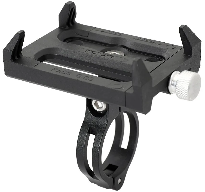 Univerzální hliníkový držák pro bezpečné uchycení mobilního telefonu na řídítkách. Kompatibilní s telefony o šířce 50–100 mm, umožňuje snadné sledování navigace či fitness aplikací během jízdy.