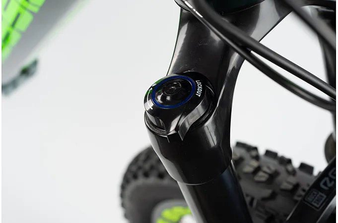 Dobře nastavená vidlice pak skvěle tlumí nárazy při jízdě v terénu, zatímco na rovném povrchu zbytečně „nepropružuje.“ Pružení je možné uzamknout pomocí uzavírání z korunky vidlice.