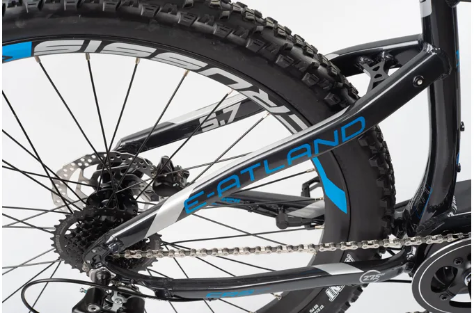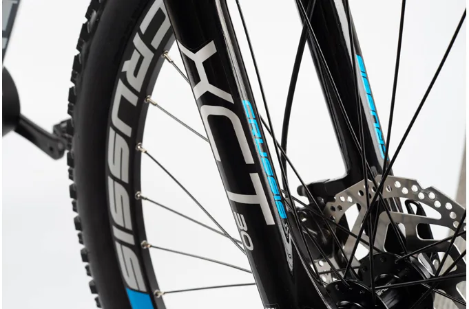 Crussis e-Atland 5.7 je vybaveno odpruženou vidlicí s pružinovým tlumením SUNTOUR XCT30 HLO DS 27,5" se zdvihem 100 mm, která je skvěle přizpůsobivá váze cyklisty.