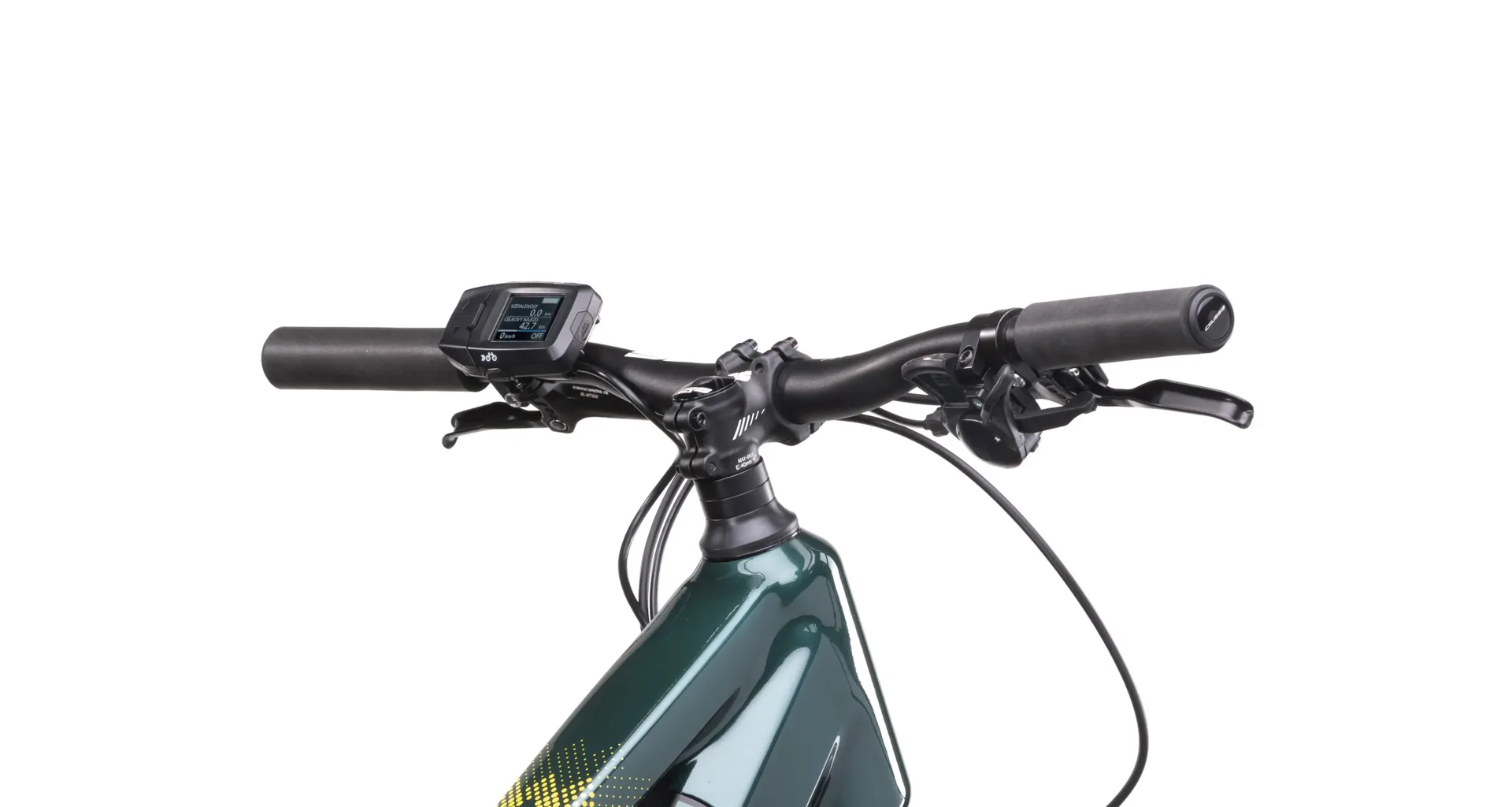 Ovládejte své elektrokolo barevným LCD displejem od PANASONIC, umístěným na levé straně řídítek. Elegantně navržený displej je vybaven USB portem pro pohodlné nabíjení vašeho telefonu.