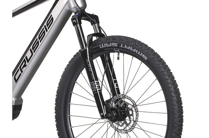 Crussis e-Atland 7.10 je vybaveno odpruženou vidlicí s pružinovým tlumením SUNTOUR XCM32 NLO DS 29" se zdvihem 100 mm, která je skvěle přizpůsobivá váze cyklisty.
