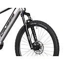 Komfort zajišťuje vyladěná geometrie a také bohatá základní výbava s odpruženou vidlicí s pružinovým tlumením, kotoučovými brzdami a stabilními 27,5“ zapletenými koly.