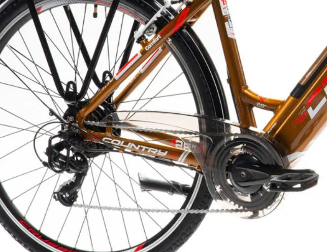 Komfort zajišťuje vyladěná geometrie a také bohatá základní výbava s odpruženou vidlicí s pružinovým tlumením, kotoučovými brzdami a stabilními 28“ zapletenými koly.