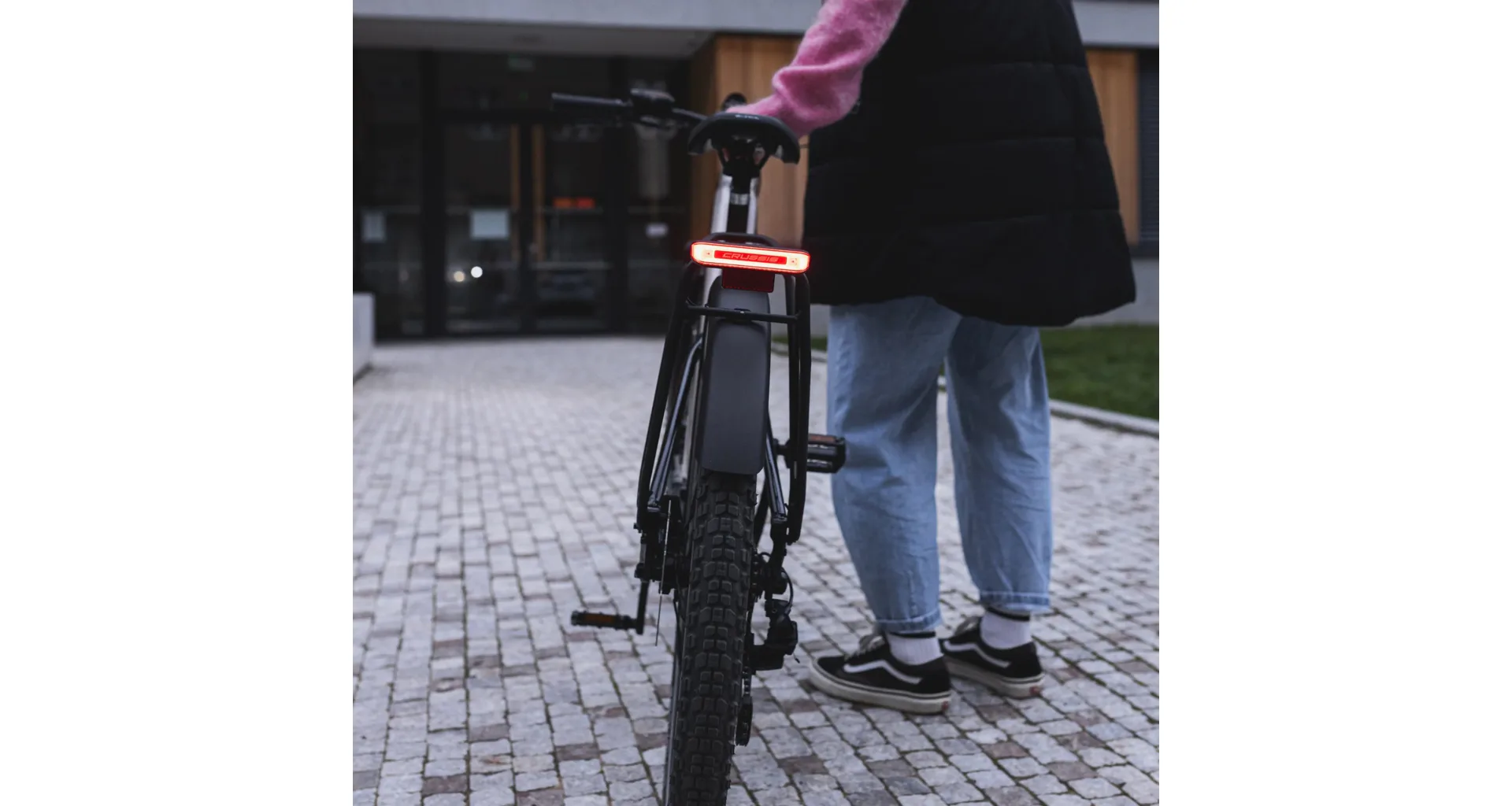 Zadní světlo je napájeno z baterie a ovládáno přímo z řídítek elektrokola.
