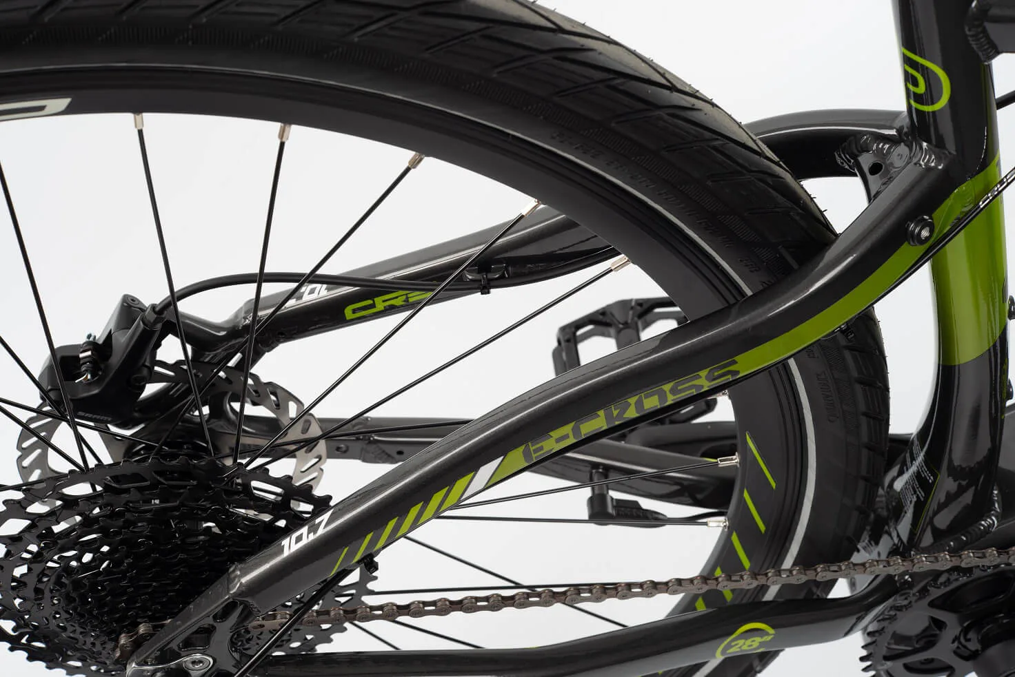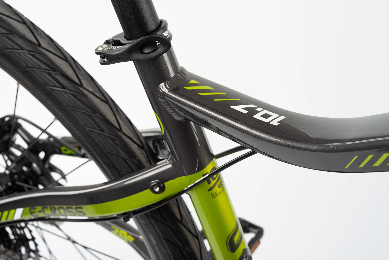 Model CRUSSIS e-Cross 10.7 je nabité tím nejlepším, čím lze elektrokolo v dané cenové kategorii osadit. Patří mezi oblíbená treková elektrokola značky CRUSSIS určené především pro pány! Vyniká především svoji integrovanou 13,4 Ah baterii přímo v rámu, takže není nijak narušený design kola a zajišťuje maximální komfort a ovladatelnost při jízdě jak v nízké, tak i vysoké rychlosti.