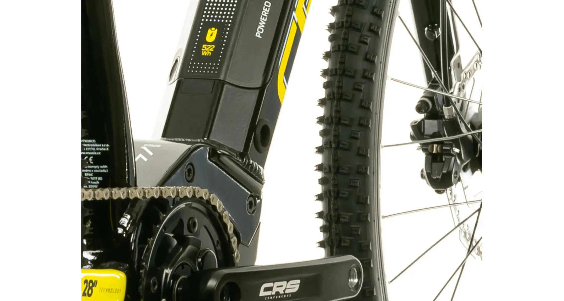 - hliníkový rám se sportovně střiženou geometrií a plně integrovanou baterií v rámu