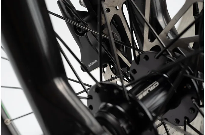 Crussis e-Cross 9.7 je vybaveno odpruženou vidlicí s pružinovým tlumením ROCKSHOX FS Paragon Gold RL R Solo Air 700c se zdvihem 65 mm, která se skvěle přizpůsobí váze cyklisty. Jednoduchým systémem si změníte tlak vzduchu ve vidlici a e-bike plně přizpůsobíte vaší váze a stylu jízdy.