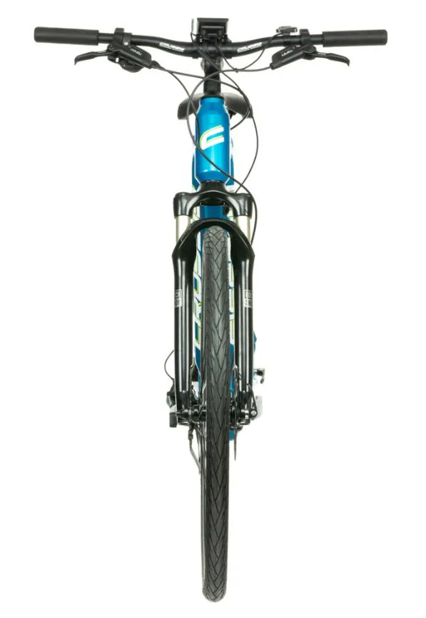 Komfort zajišťuje vyladěná geometrie a také bohatá základní výbava s odpruženou vidlicí s pružinovým tlumením, kotoučovými brzdami a stabilními 28“ zapletenými koly.