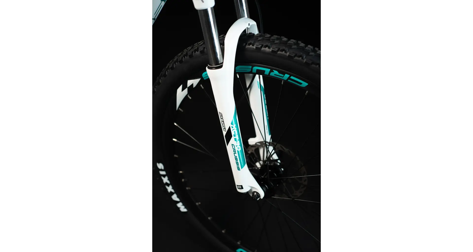Crussis e-Fionna 5.8 disponuje odpruženou vidlicí s pružinovým tlumením SUNTOUR XCT30 HLO DS 29", se zdvihem 100 mm, která je skvěle přizpůsobivá váze cyklisty.