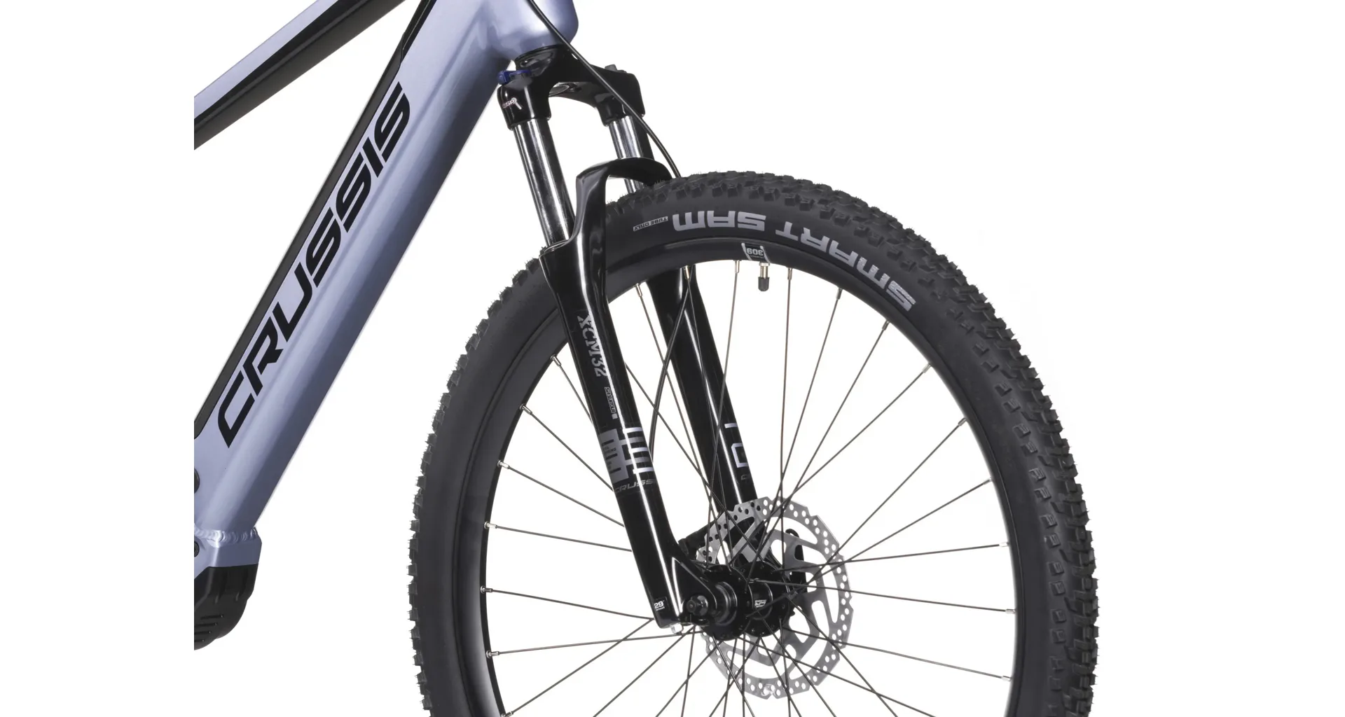 Crussis e-Fionna 7.10 je vybaveno odpruženou vidlicí s pružinovým tlumením SUNTOUR XCM32 NLO DS 29" se zdvihem 100 mm, která je skvěle přizpůsobivá váze cyklisty.