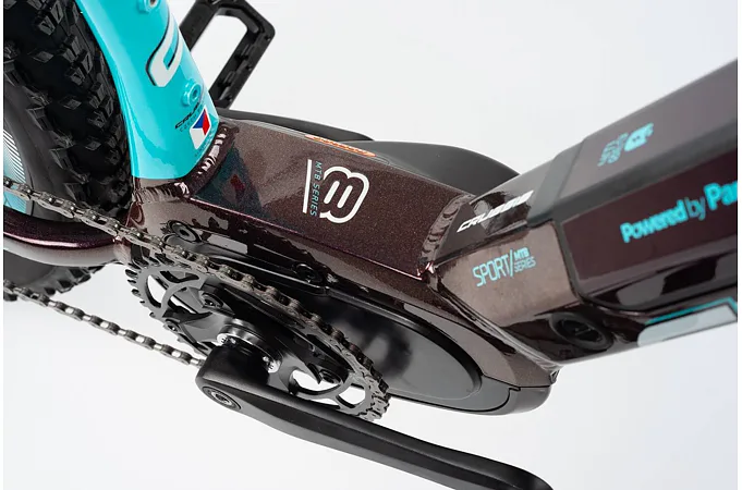 Motor je umístěn ve středové části rámu, díky tomu jsou zajištěny maximálně dobré manipulační schopnosti s kolem a komfortní jízda a sportovní vzhled.
