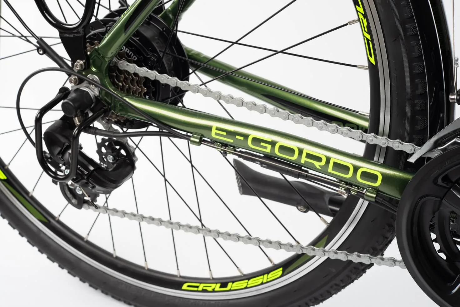 Model CRUSSIS e-Gordo 1.7 patří mezi oblíbená treková elektrokola značky CRUSSIS určené především pro pány! Vyniká svoji integrovanou baterii přímo v rámu, takže není nijak narušený design kola a zajišťuje maximální komfort a ovladatelnost při jízdě jak v nízké, tak i vysoké rychlosti. Kapacita baterie se liší dle zvolené varianty – základní (13 Ah) nebo S (17,5 Ah).