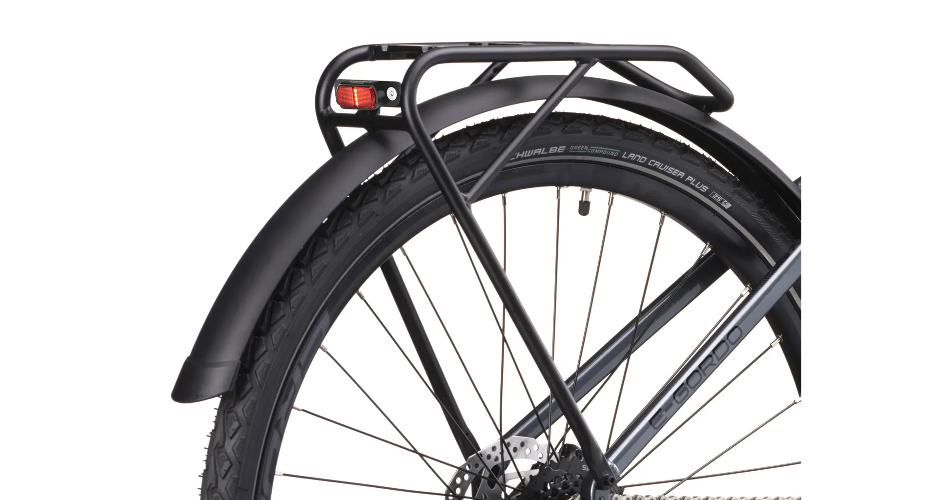 - Přední a zadní osvětlení napájené z baterie elektrokola