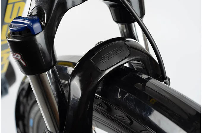 Dobře nastavená vidlice pak skvěle tlumí nárazy při jízdě v terénu, zatímco na rovném povrchu zbytečně „nepropružuje.“ Pružení je možné uzamknout pomocí uzavírání z korunky vidlice.