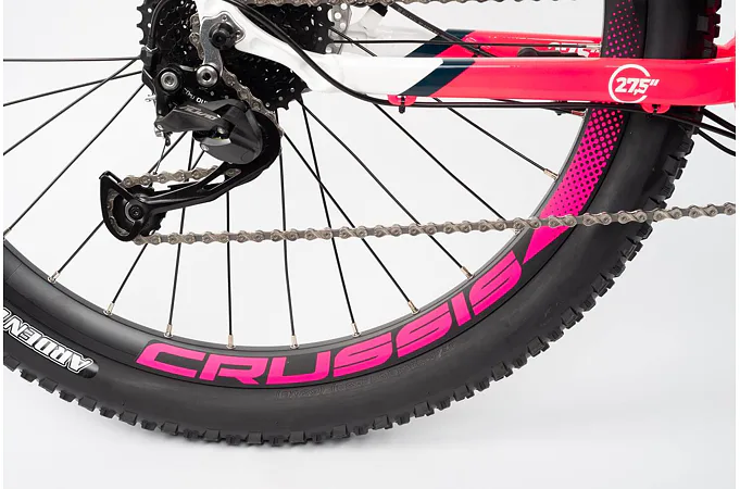 Komfort zajišťuje vyladěná geometrie a také bohatá základní výbava s odpruženou vidlicí s pružinovým tlumením, kotoučovými brzdami a stabilními 27,5“ zapletenými koly.