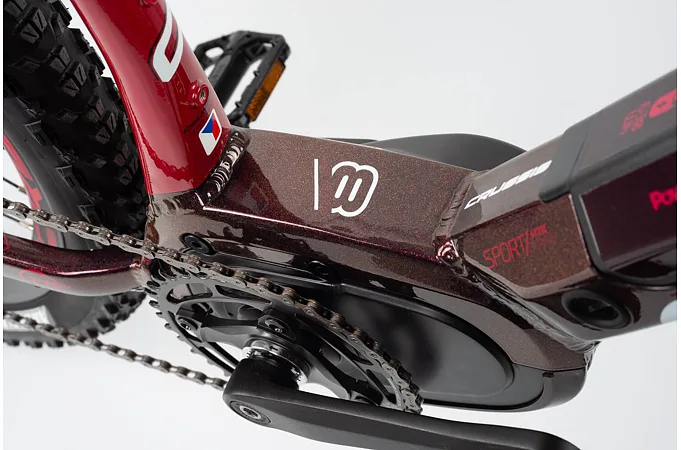 Motor je umístěn ve středové části rámu, díky tomu jsou zajištěny maximálně dobré manipulační schopnosti s kolem a komfortní jízda a sportovní vzhled.