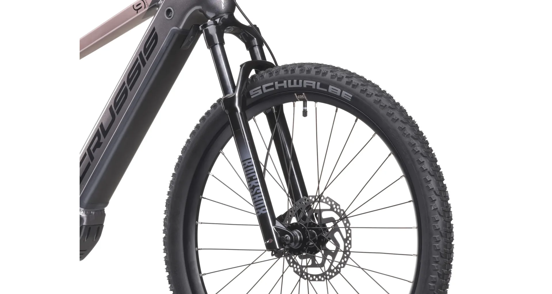 Crussis e-Guera 9.10 je vybaveno odpruženou vidlicí se vzduchovým tlumením ROCKSHOX FS Judy Silver TK Solo Air 27,5" se zdvihem 100 mm, která je skvěle přizpůsobivá váze cyklisty.