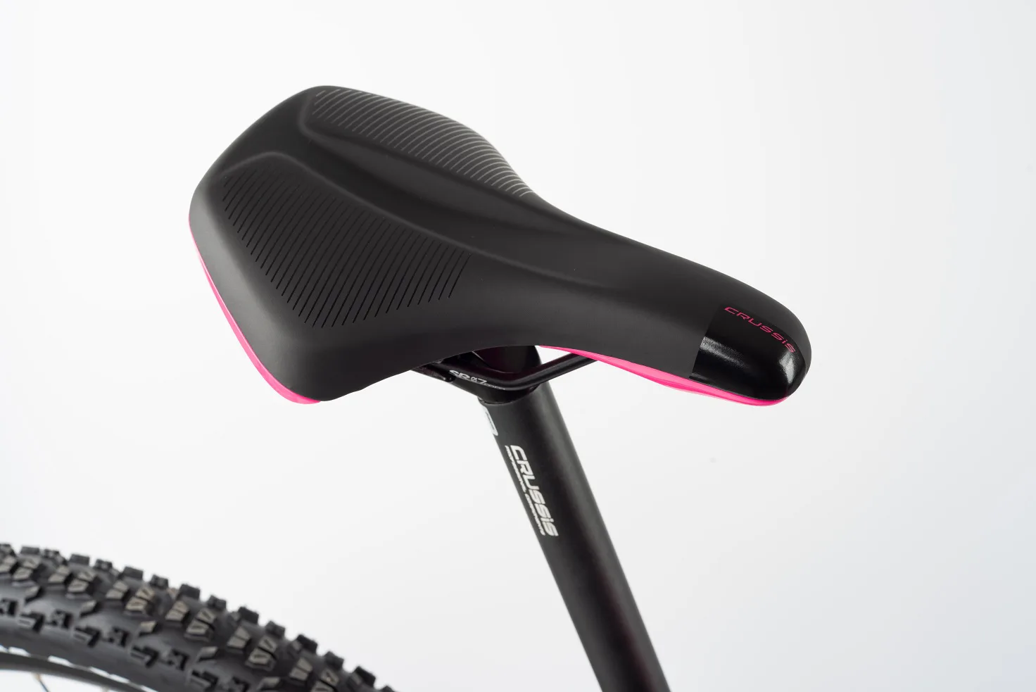 Komfort zajišťuje vyladěná geometrie a také bohatá základní výbava s odpruženou vidlicí s pružinovým tlumením, kotoučovými brzdami a stabilními 27,5“ zapletenými koly.