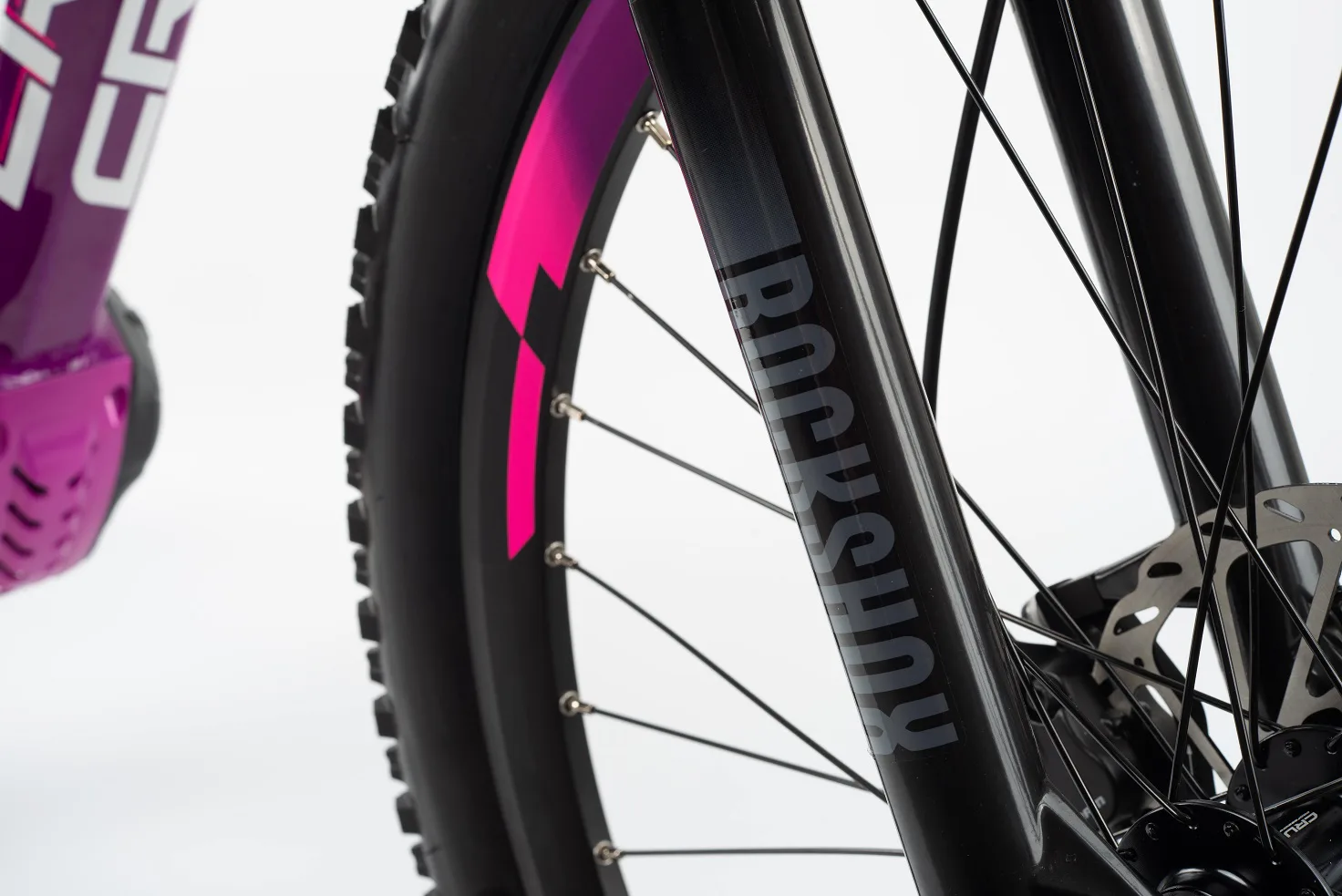 Crussis e-Guera 9.7 je vybaveno odpruženou vidlicí s pružinovým tlumením ROCKSHOX FS Judy Silver TK Solo Air 27,5" se zdvihem 100 mm, která je skvěle přizpůsobivá váze cyklisty.