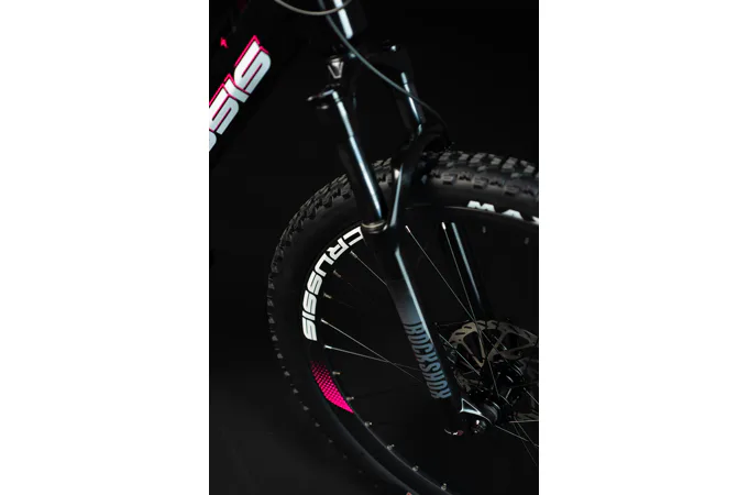 Crussis e-Guera 9.8 je vybaveno odpruženou vidlicí se vzduchovým tlumením ROCKSHOX FS Judy Silver TK Solo Air 27,5" se zdvihem 100 mm, která je skvěle přizpůsobivá váze cyklisty.