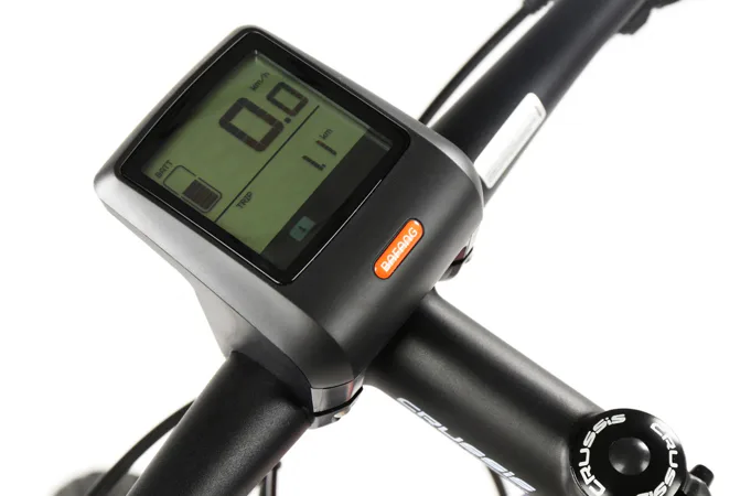 Přehledný černobílý LCD displej zobrazuje kromě základních informací týkajících se stavu baterie a aktuálně využívaného stupně asistence také další údaje týkající se jízdy (rychlost, ujetá vzdálenost aj.).