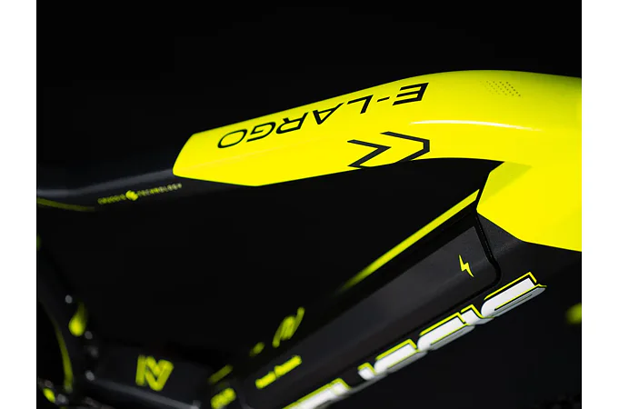 Baterie elektrokola e-Largo 7.8 Li-Ion články Panasonic 36V / 630 Wh (17,5 Ah) je integrovaná v rámu. Tato pozice je ideální pro vyváženost hmotnosti baterie a se zárukou dobré manipulace s kolem.