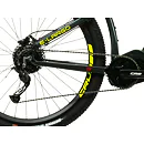 Komfort zajišťuje vyladěná geometrie a také bohatá základní výbava s odpruženou vidlicí s pružinovým tlumením, kotoučovými brzdami a stabilními 29“ zapletenými koly.
